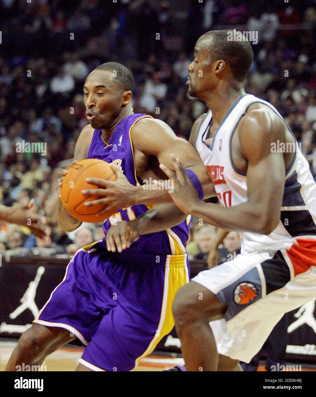Los Angeles Lakers Small Forward Ron Artest R Works To Shoot Against Charlotte Bobcats Small Forward Gerald Wallace C And Center Kwame Brown 3rd R During Their Nba Basketball Game In Charlotte