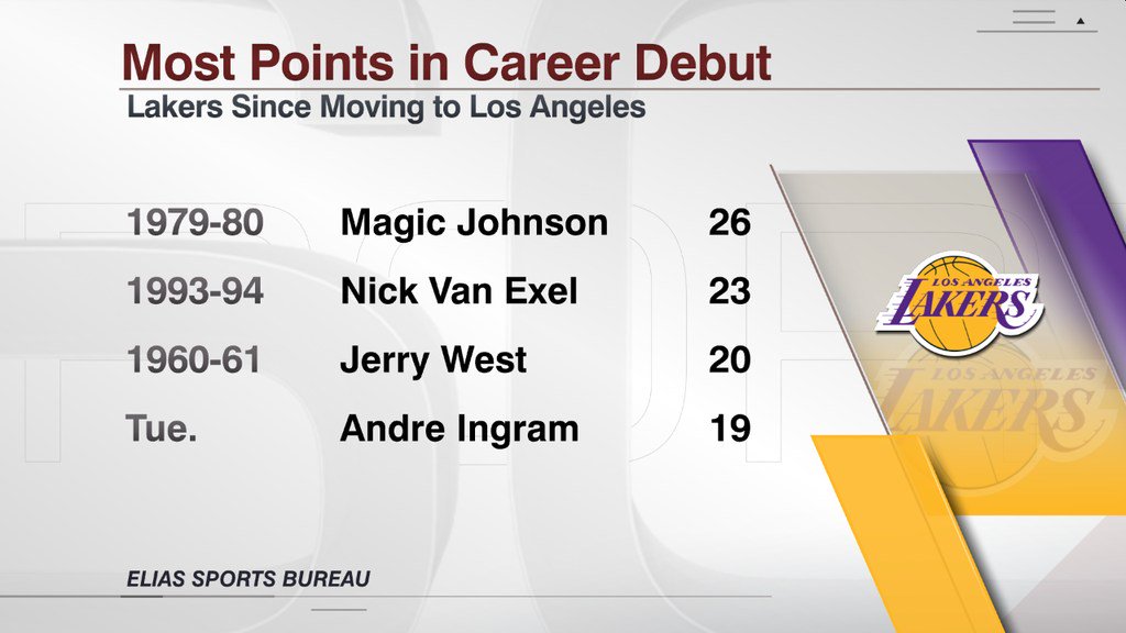 Espn Stats Info On Twitter Only 3 Lakers Scored More Points In Their Career Debut Since The Franchise Moved To Los Angeles Than Andre Ingram Did On Tuesday You May Have